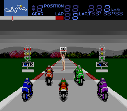 Looks and feels like a late 80's arcade title. No complaints, but other than a girl with an umbrella introducing each race, there's not much presentation.