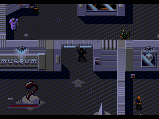 Decent controls. Far less laggy that the SNES and Genesis original. I think those versions suffered from a lot of slowdown because this version plays much more smooth. Very short jump so you're mostly grounded. Uses a cover system where you duck and hide behind boxes. Can't just go guns blazing like Contra. But the top down levels are much faster. Switches between side and top-down, like two games knitted together. Practically no hit detection in side view levels. Typical western stuff like endless spawning baddies Enemies sometimes disappear instantly