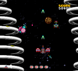 Extremely simple gameplay. Low difficulty. Quickly get a powerful set of weapons and subweapons. Each stage gives you a different weapon but it's not tailored to the stage or anything, so it doesn't feel well designed. Most of the weapons favor shooting horizontally or backward, which isn't useful most of the time. Fast movement and responsive controls are notable, but this is a game I wouldn't revisit.