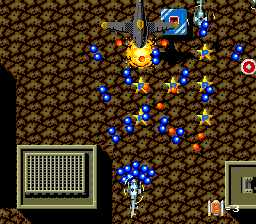 Never a dull moment in this game. This one will test your reaction times. Major props for filling the screen with enemies. There are only a handful of enemies which appear in a variety of waves, placements, and numbers. Some are stationary while others are ground- or air-based.