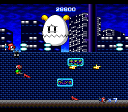 Enemy sprites are great, with every ball and spaceship featuring googly eyes. It's a lot like Coryoon or Air Zonk in that regard. The backgrounds, while colorful, don't have much details and no parallax.