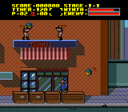In some ways this is a better visual improvement than the Ninja Gaiden Trilogy. The sprites look about the same but some of the backgrounds have far more detail. Scrolling in the first stage is an unbelievable eyesore! The city skyline appears to scroll backward as you move. It's hideous!