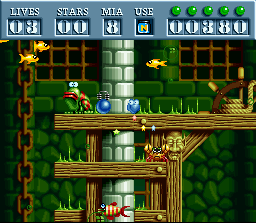 Far better than the original game, but still not much fun. You've got a short jump but a powerful punch attack that can be upgraded with a projectile. Beyond the standard platforming, most of the gameplay centers around collecting fellow blobs and finding and using items. Unfortunately, most items don't seem to do anything. They'll explode, do something useless, or do nothing at all. Others will do something incredibly helpful, like grant you invincibility or let you float around in a rocket, but they either go away quickly or sap your health until you die. The randomness and unpredictability of these items makes them unfun to use.