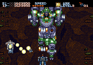 How hum. Adjustable speed is nice and having four weapons is also good, although the chaser and laser are the only two worth using. They can powered up three times but there are no sub weapons or screen clearing bombs. You've got a huge hitbox and taking damage feels inconsistent.