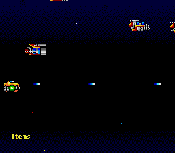 You're a chunky spaceship similar to Twinbee or Mr. Heli. Weird, out-of-place screens between stages feature a lady at a news desk along with a wall of Japanese text. Uh, ok
