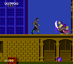 Enemies like to position themselves such that you must perform a perfectly timed throw while jumping, which makes for a ton of cheap deaths and annoying encounters. Plus the shield bearing enemies are terrible to deal with as well. It's a shame because the gameplay mechanics are solid, if uninspiring. The objective of each stage is to rescue all kidnapped children. Each stage is broken into three show sections follwed by a boss fight. The bosses are insane. I'm convinced that the stage three boss cannot be beat. Also, where are the between-stage ninja throwing star minigames?
