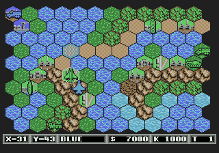 Plays like an early, early version of Famicom/Advance Wars. The same mechanics are here - build units at a base or airport, move them along a grid, take neutral or enemy bases, and attack enemy units which has strengths or weaknesses against certain kinds of units. Unfortunately, that the UI is clunky and dated, and everything moves at a snail's pace. It was 45 minutes before I had my first encounter with an enemy unit. On the first map. The other huge complaint I've got is the jilted scrolling of the map. Only full tiles appear on the screen, and moving the cursor toward the border of the screen is the only way to scroll it. This causes the entire screen to redraw rather than scrolling it. It feels like an early DOS title. WAY too slow for me, despite the good gameplay mechanics. Oh, and the number and variety of units is admirable, but overwhelming.
