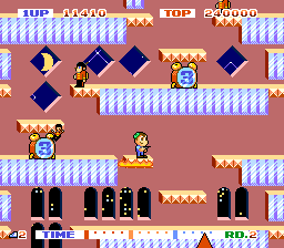 A catchy song is the entire soundtrack, but that's to be expected for a Bubble Bobble clone. Good arcade sound effects, although the alarm clock sound for the enemy generators gets old fast.