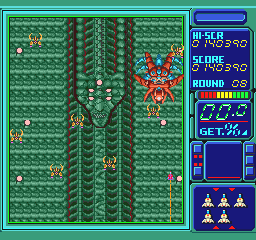 Standard Qix gameplay. Press a button to leave the outside and draw a line. Goal is to close off 75% of the screen. Enemies bounce around and kill you if they hit your incomplete line. You can pick up powerups by boxing in these crystals which come and go. They disappear so quickly that you can rarely get them. They're all useless other than the S that uses your speed.