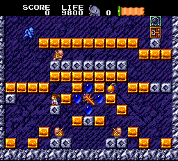 Single screen puzzler. The core mechanic is the ability to build or destroy blocks. Enemies can be killed only by removing a block from below them. It's basically Kickle Cubicle as a platformer but without the ability to directly kill enemies. That last part about not killing enemies is this game's Achilles heel, but we'll talk about that in the level design section. An oppressive timer means that you can't take your time to noodle over how to solve a room. It's a speedrun the full time. Laggy controls. Feels like the mid-80's arcade game that it is. Also, jump is accomplished via pressing up on the dpad, which makes it hard to make precise jumps. Jump and move laterally at the same time is a pain. The 2 button is reserved for attacks which are almost never available. This makes platforming awful.